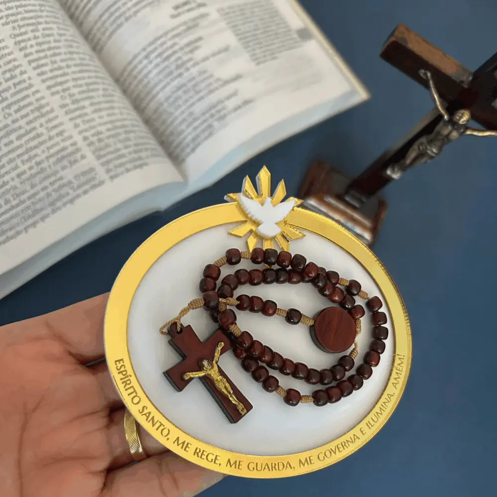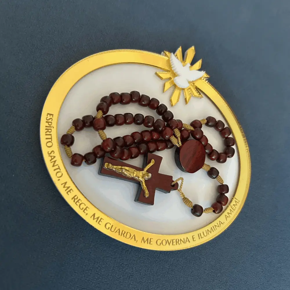 Descanso de Terço em acrílico, personalizado com gravação e aplique. Perfeito para lembrança de Batizado, Primeira Comunhão/Eucaristia e Crisma. Não acompanha o terço.