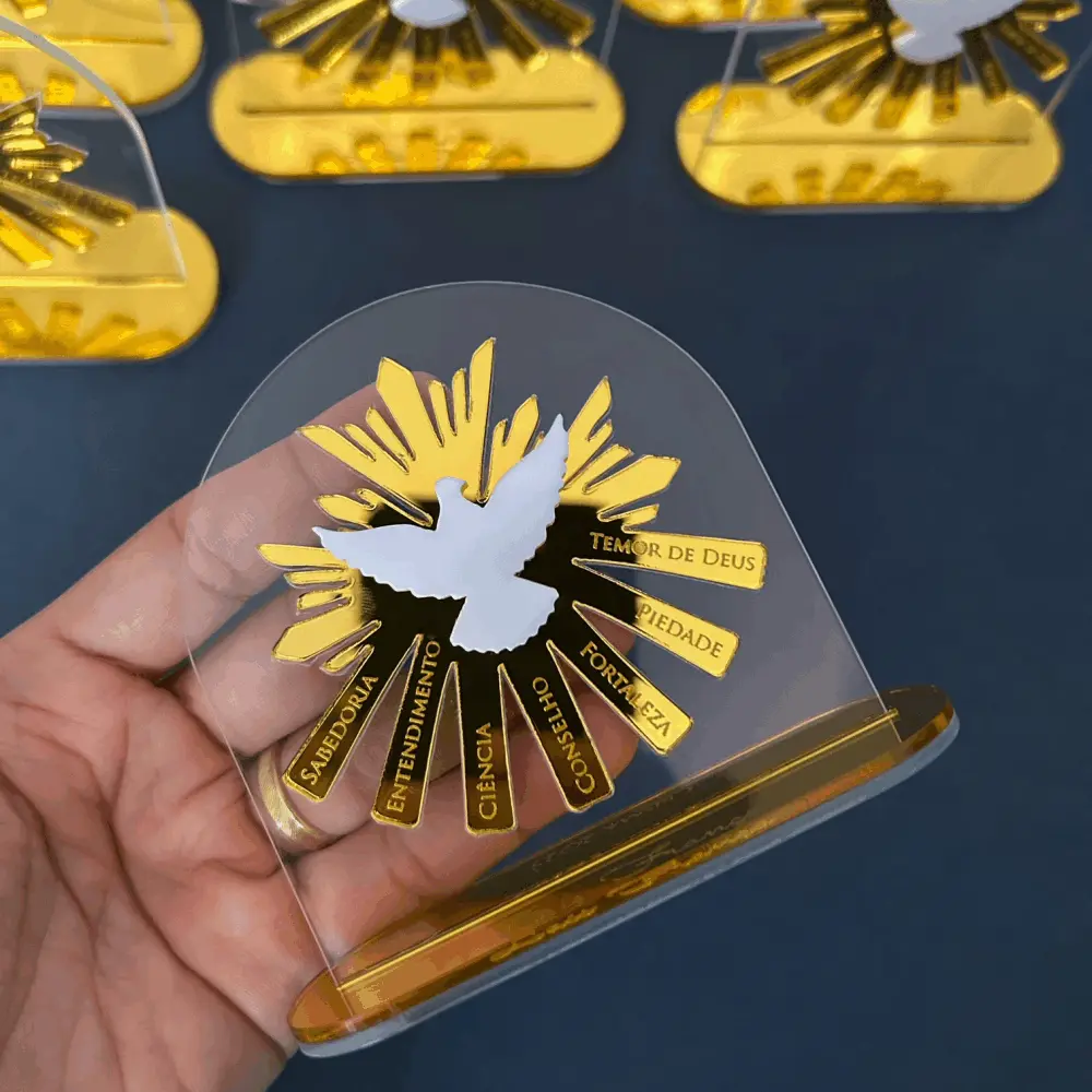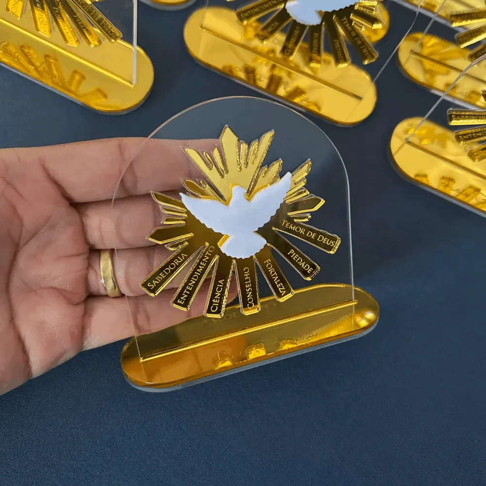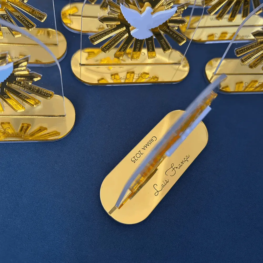 Placa decorativa em acrílico cristal e espelhado, personalizada com gravação. Ideal para lembrança de Batizado, Primeira Comunhão/Eucaristia ou Crisma.