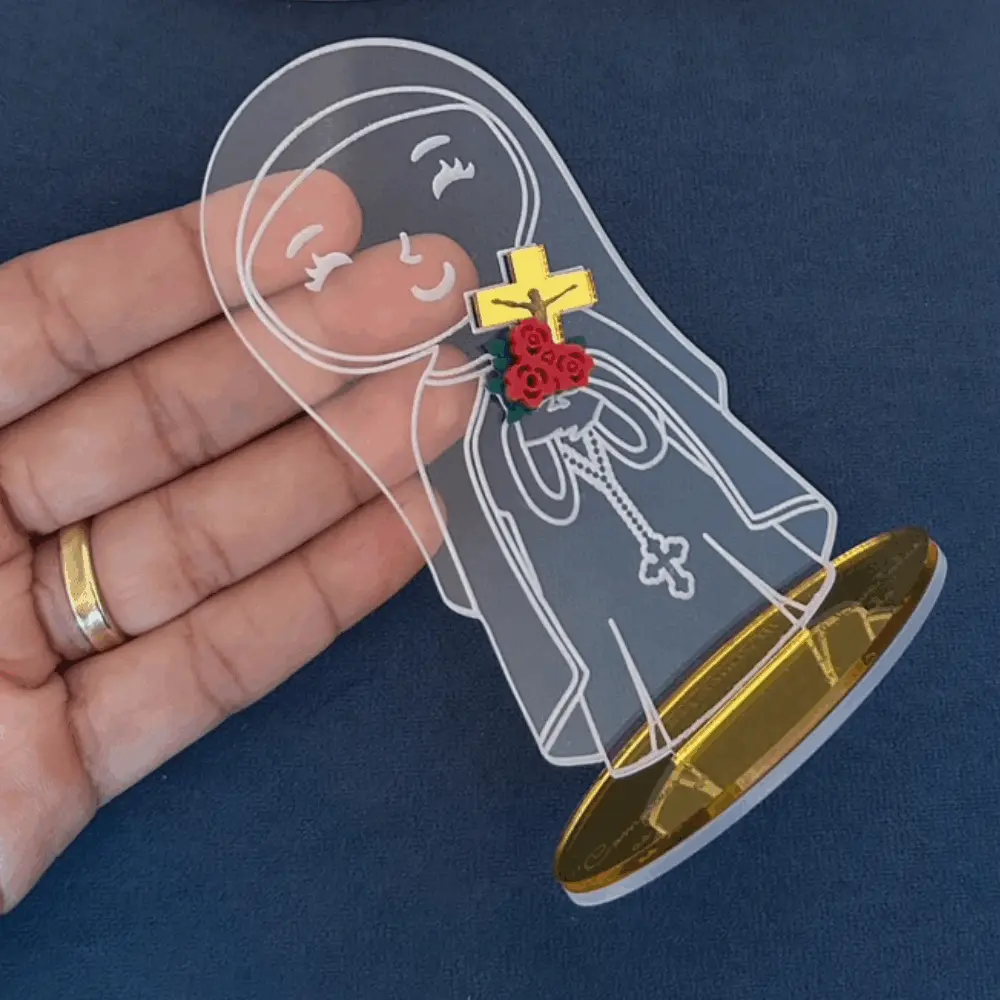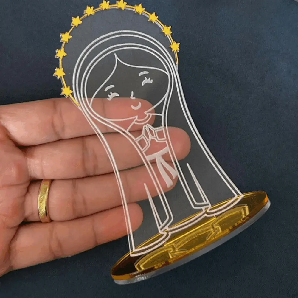 Santinhos decorativos em acrílico cristal e espelhado, personalizados com gravação. Ideal para lembrança de Batizado, Primeira Comunhão/Eucaristia ou Crisma.